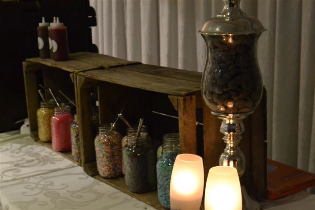 Followed by a make your own chocolate bar station (with custom wrappers and toppings).